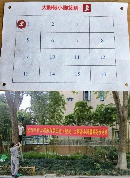 這是今年風雅錢塘小區(qū)“大腳帶小腳活動”的第二期,活動的發(fā)起人是住在濱江風雅錢塘小區(qū)的跑友們,活動時間持續(xù)到八月底,每周三、周日兩次。