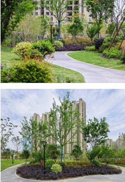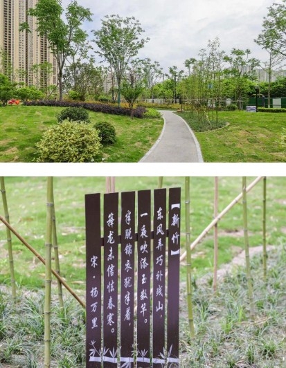 園路沿線布置金桂、紫薇、迎春櫻,美人梅等開花植物,移步換景并充分享受四季的變化,同時選用紫竹、倭竹、四季竹、剛竹等多個竹子品種,竹子枝桿挺拔、修長、四季青翠,讓人感受勃勃的生機。