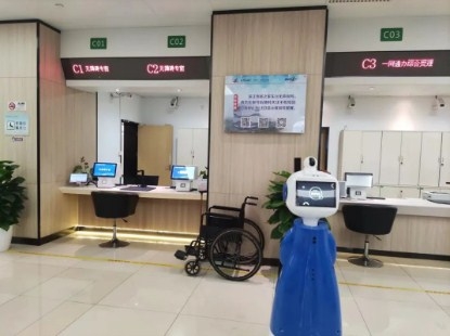 “小濱”是誰?它是區行政服務中心自主研發的智能機器人,也算是大廳的一位工作人員。“小濱”內置全廳13個辦事業務區、1個自助服務區和服務臺的坐標點位,可以0.5秒內快速響應,可為老年人、殘障人士等特殊群體提供帶路服務。