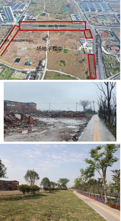西浦路整治項目位于西浦路東側、濱文路至東冠路東側。整治前,這里被附近居民種滿了蔬菜。街道、社區積極做好居民戶工作,施工單位加大工作力度,確保西浦路整治項目有序推進,在場地平整完成后,鋪種了草皮、桂花、紅葉石楠球等綠化4185平方米。