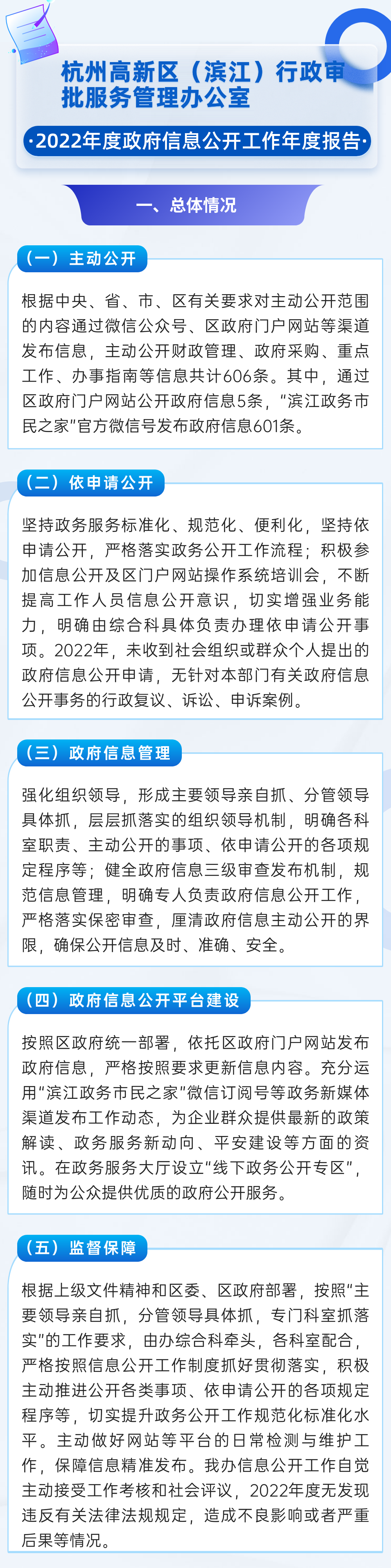 圖解 濱江區行政審批服務管理辦公室2022年度政府信息公開工作年度報告