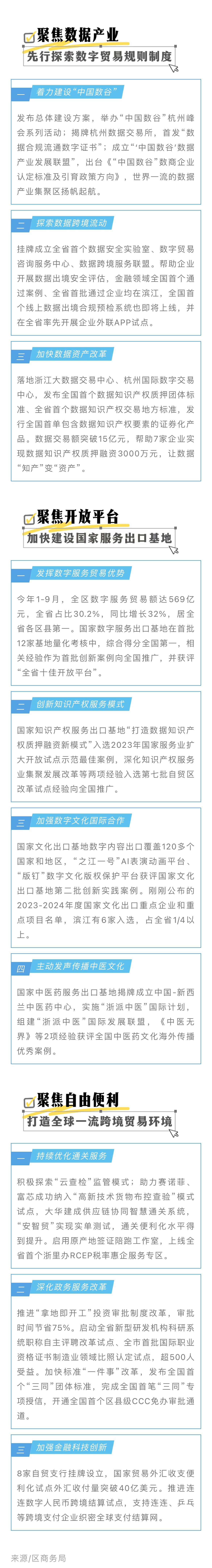自2020年9月,中國(浙江)自由貿易試驗區杭州片區濱江區塊獲批以來,高新區(濱江)立足數字經濟產業優勢,堅持開放引領、推進制度創新,全力打造數字自貿先行示范區。三年來,濱江區塊累計新設企業超1.8萬家,實際使用外資超30億美元,外貿進出口總額超2200億元,稅收超820億元,跨境支付交易規模突破9000億元,形成制度創新案例75項,國家級出口基地數量占全省的一半,濱江自貿起步良好、成效顯著。