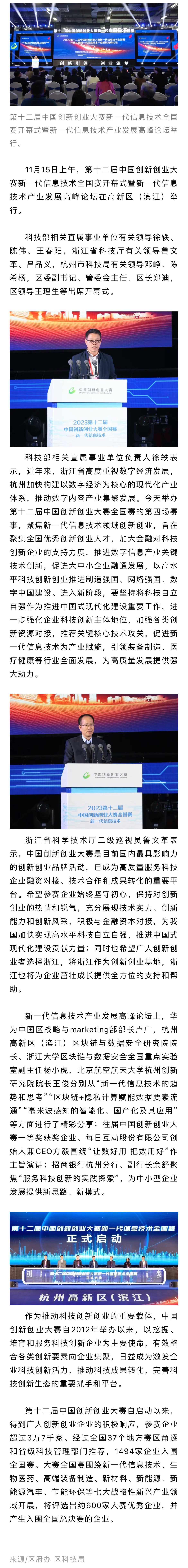 第十二屆中國創新創業大賽新一代信息技術全國賽在高新區(濱江)開幕