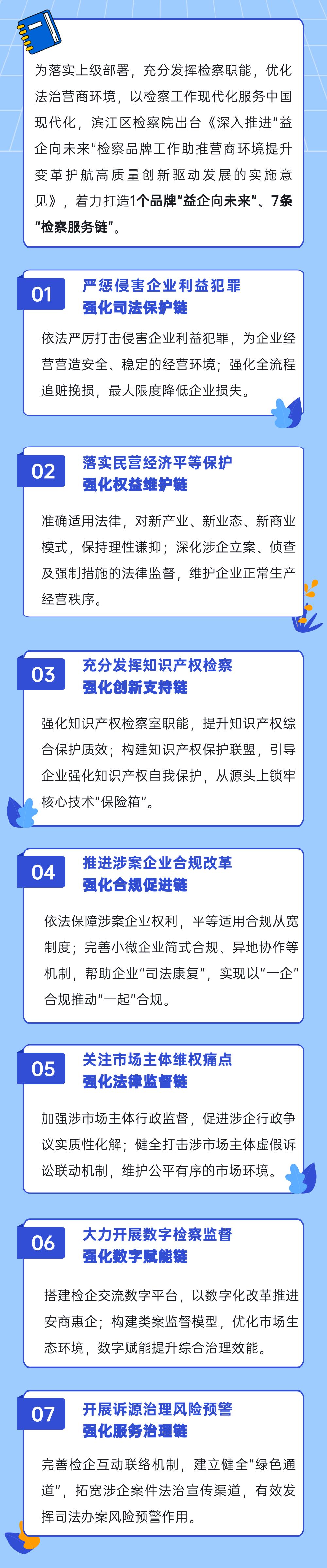 6月28日,高新區(濱江)營商環境優化提升大會召開。會議發布高新區(濱江)營商環境優化提升九大專項行動,包括濱江區檢察院“益企向未來”檢察護航行動。 法治營商環境作為五大營商環境之一,濱江區檢察院黨組副書記、副檢察長龔赟燕在會上作交流發言。 濱江區檢察院始終貫徹“法治是最好的營商環境”理念,充分發揮檢察職能,推進全覆蓋、多維度服務保障企業健康發展,不斷優化工作機制,成功辦理了一批新型復雜、影響較大的涉企典型案件。下一步,將積極融入全區營商環境改革提升,貫徹落實《關于深入推進“益企向未來”檢察品牌工作助推營商環境提升變革護航高質量創新驅動發展的實施意見》(以下簡稱《“益企向未來”實施意見》),著力強化司法保護鏈、權益維護鏈、創新支持鏈、合規促進鏈、法律監督鏈、數字賦能鏈、服務治理鏈7條檢察服務鏈條,以更高標準助力企業更好更快發展,為高新區(濱江)建設“兩個天堂”提供強有力的檢察保障。 | |||