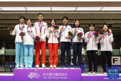 這也意味著,17歲的浙江姑娘黃雨婷繼10米氣步槍女子團體和個人兩枚金牌后,又收獲一枚混合團體金牌,成為杭州第19屆亞運會首個“三冠王”。