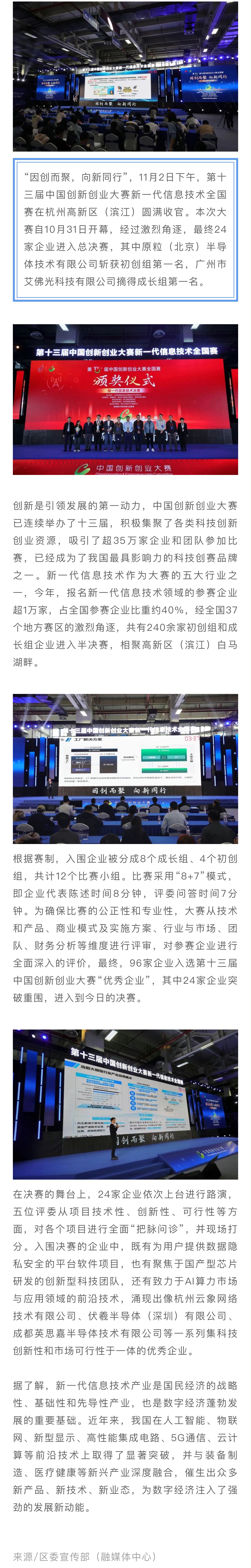 第十三屆中國創新創業大賽新一代信息技術全國賽在高新區(濱江)圓滿收官