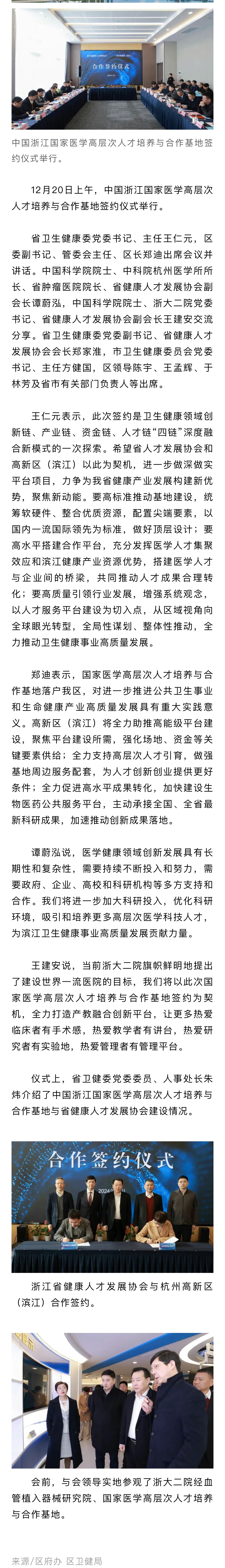 中國浙江國家醫(yī)學(xué)高層次人才培養(yǎng)與合作基地簽約儀式舉行