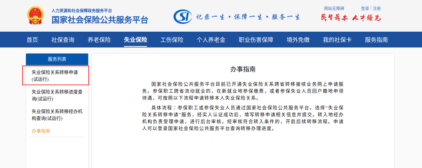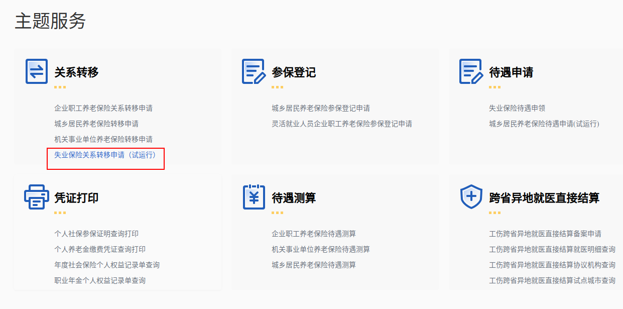 注冊并登錄后選擇“失業保險關系轉移申請”。