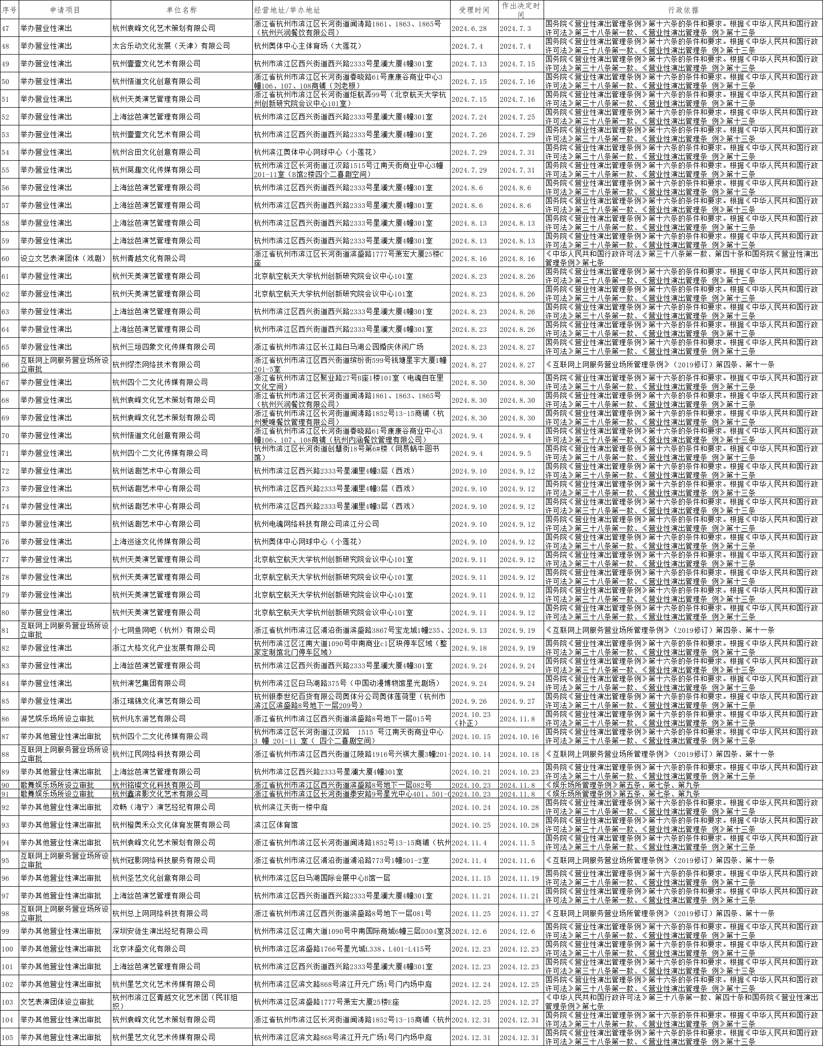 濱江區文廣旅體局2024年7-12月關于文化和旅游行政許可的公示