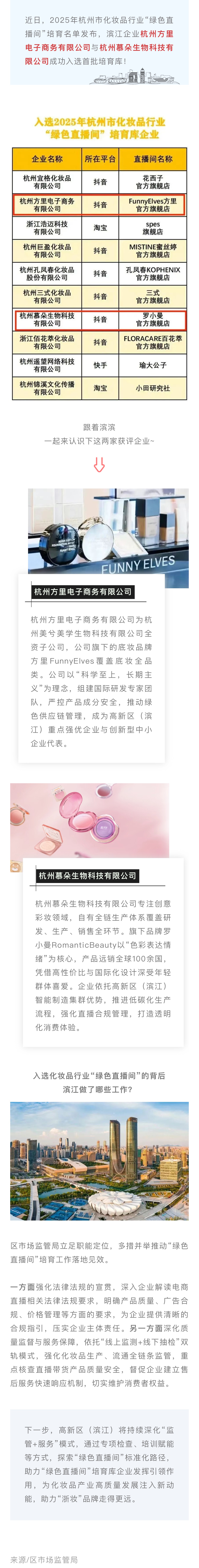 濱江兩家企業入選化妝品“綠色直播間”培育名單