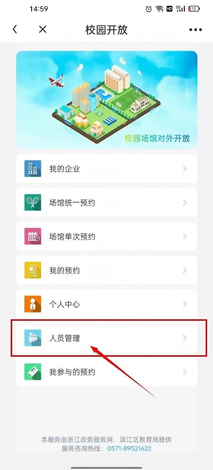 個人需通過所在企業或社區的賬號管理員進行預約。 二、企業/社區賬號管理員預約 1、企業/社區賬號管理員,通過浙里辦入口,檢索【校園開放】,或從區縣服務>濱江區,進入【校園開放】應用,并進行人臉認證識別。 2、選擇【企業預約】入口,首次使用的企業/社區賬號管理員進行企業/社區信息認證登記,審核通過后則可以進行學校場館的統一預約。 3、進入【場館統一預約】,查看目前開放的場館列表,點擊場館可查看場館目前開放時段,企業賬號管理員可根據實際情況,預約相應周次、時段(可多選時段), 提交后由學校場館管理員進行審核,通過后以短信告知賬號管理員。 4、學校場館管理員審核通過后,企業/社區賬號管理員則會收到短信通知,賬號管理員進入【場館單次預約】,選擇具體時間,并提交進館運動人員,屆時企業員工/社區居民,則可通過【我參與的預約】查看本人預約碼。 5、企業/社區賬號管理員可通過【人員管理】,添加本單位常運動的人員,方便預約時進行人員選擇,支持賬號管理員主動添加,也支持人員自主選擇加入企業/社區, 再由賬號管理員進行審核。